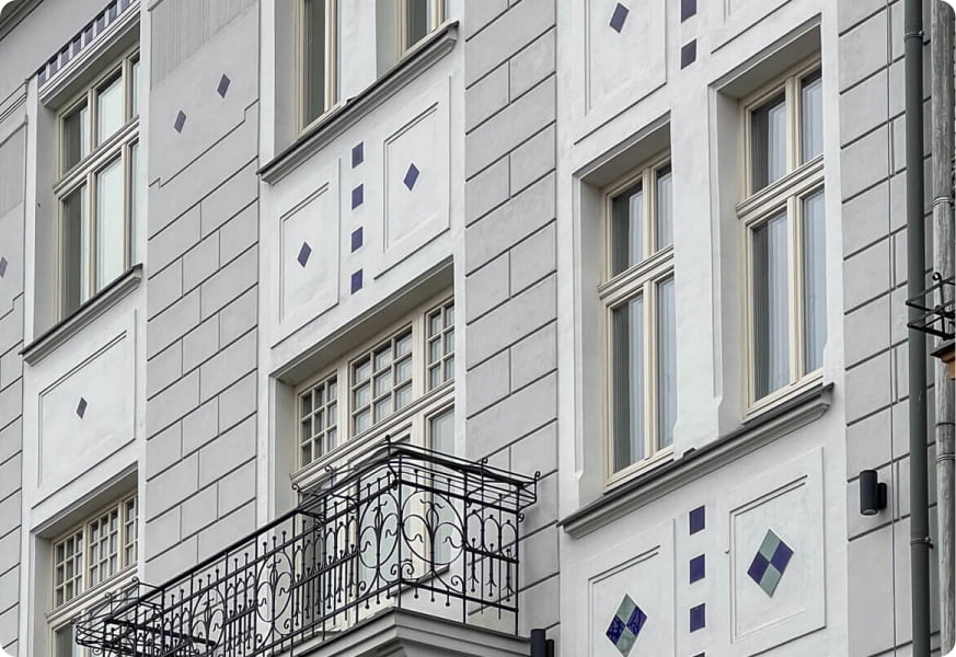 - Remont korytarzy i klatek schodowych, stref wejściowych z renowacją i montażem stolarki w zabytkowym charakterze.